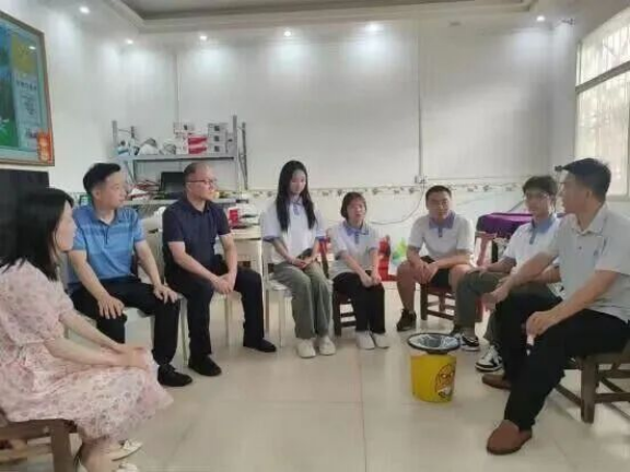同日,刘汉成、王庆一行到达黄土岗镇桐枧冲村,与“向阳花”实践团队一组成员交流座谈,一组组长唐佳颖在交流座谈中分享了该组在社会实践中开展家访调研中的感悟与心得,得到了领导们的充分肯定,并希望同学们要通过社会实践提高综合素养,应发挥专业优势,服务地方,珍惜实践机会,充分展示自己,提升自己。