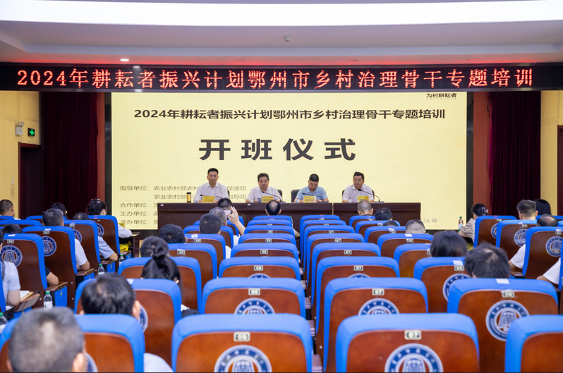 8月19日上午,“耕耘者振兴计划”鄂州市乡村治理骨干专题培训在我校开班。湖北省农业农村厅社会事业促进处副处长詹少敏,鄂州市农业农村局党组成员、副局长蔡清华,校党委书记陈向军出席开班仪式,海角热点最新消息党委书记刘汉成主持开班仪式。