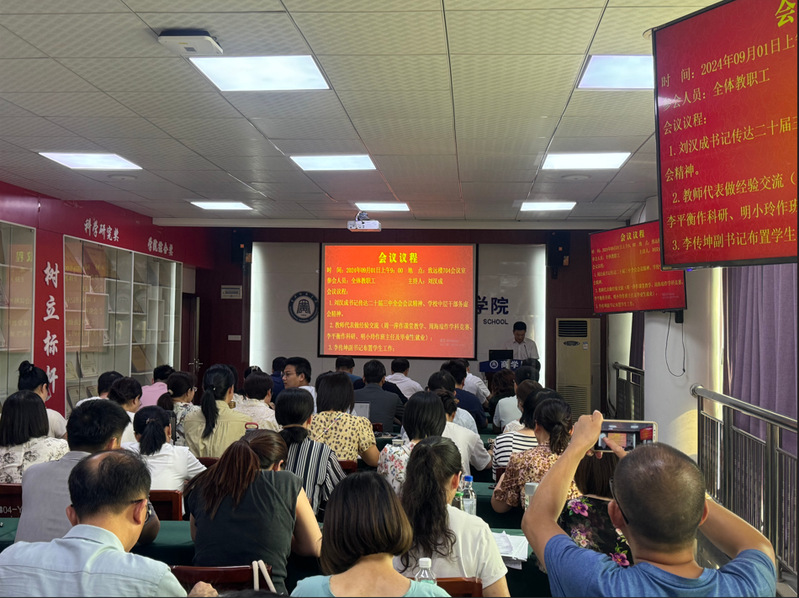9月1日上午9:00,我院在致远楼704会议室召开秋季新学期全体教师大会,会议由院党委书记刘汉成主持,全体教职工参加会议。