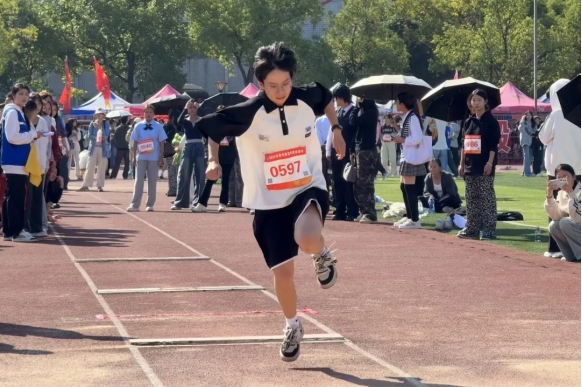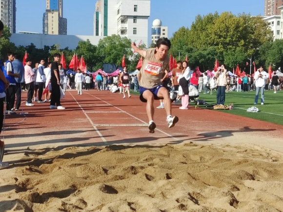 沙坑旁,高高跃起的身姿如同展翅之鹰,向着更远的目标飞翔。