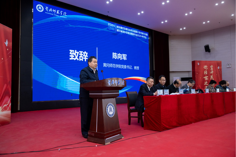 陈向军在致辞中指出,长期以来,学校坚持“立足黄冈、服务湖北、面向全国”,主动对接国家重大战略及区域经济发展需求,充分发挥学科专业及人才资源优势,为地方经济社会发展提供人才和智力支持。城乡融合发展是中国式现代化的必然要求,统筹新型城镇化和乡村全面振兴,是做好2024年经济工作的三个统筹任务之一,是实现城乡融合发展、富裕的根本途径,是全面推进中国式现代化和社会主义现代化强国建设的必由之路。本次会议主题紧跟国家大政方针,聚焦城乡融合发展的新路径、新模式,充分体现了省城乡统筹发展研究会的与时俱进和使命担当,希望与会专家学者以本次学术研讨会为契机,深入学习贯彻党的二十届三中全会精神和习近平总书记考察湖北重要讲话精神,共同产出更多高质量的研究成果,为促进乡村全面振兴、实现城乡高质量融合发展做出更大的贡献。