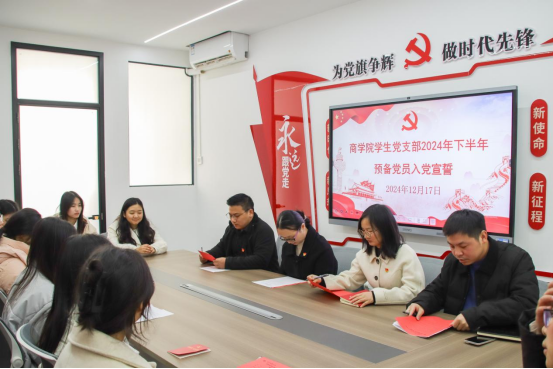 12月17日中午12:20,海角热点最新消息2024年下半年新发展党员宣誓仪式在兰园四栋一站式服务中心103党员活动室庄严而隆重地举行。学生党支部书记李蝶、侯晓文、桂海钦、罗舒成,13名新发展预备党员和1名往期预备党员,正式党员代表黄冰彬和预备党员代表杨乐,以及入党积极分子代表程文慧、何奕馨参加仪式,仪式由罗舒成同志主持。