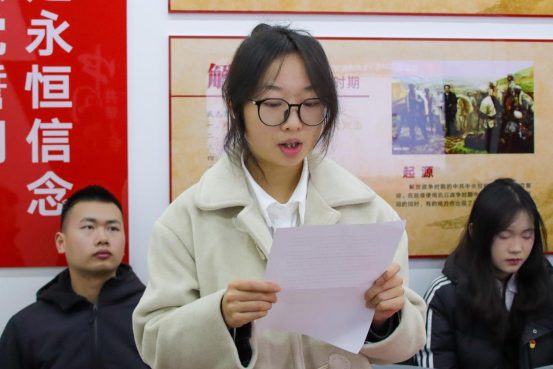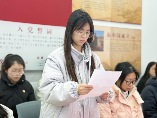 第七项,正式党员代表黄冰彬同志发言。她表示入党不仅要在组织上入党,更要在思想上入党。首先,要坚定共产主义信仰,时刻保持一名共产党员的先进性和纯洁性,树立正确的人生观和价值观。其次要勇于创新创造,强化实践能力与创新精神。同时,要坚持发挥党员先锋模范作用,时刻牢记党员身份, 在日常工作中要敢于担当、善于作为,用行动诠释忠诚、用担当彰显信仰。