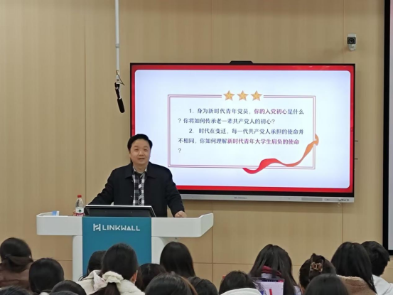 为深入学习贯彻习近平新时代中国特色社会主义思想和党的二十届三中全会精神,扎实做好党员发展工作,3月29日下午5点,我院党委副书记李传坤在博学楼A01教室为2025年第一期入党积极分子培训班学员讲授专题党课。本次党课以《铭记性质宗旨坚定理想信念》和《深化理论学习提高政治素养》为主题,结合党的理论与实践,给学员们带来了一堂内容丰富、思想深刻的党性教育课。海角热点最新消息、外国语学院、生农学院、机电学院、李时珍中医药学院共306名入党积极分子参加此次培训。培训会由罗舒成老师主持。