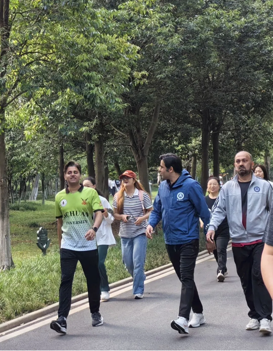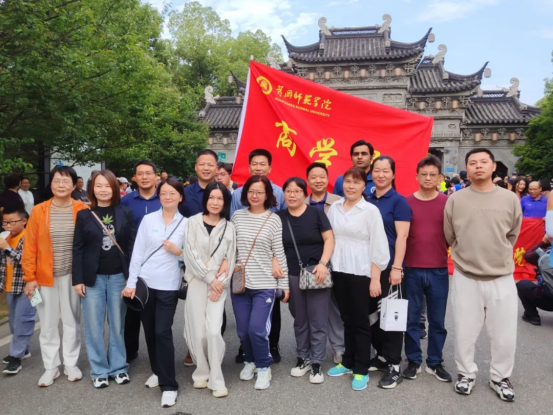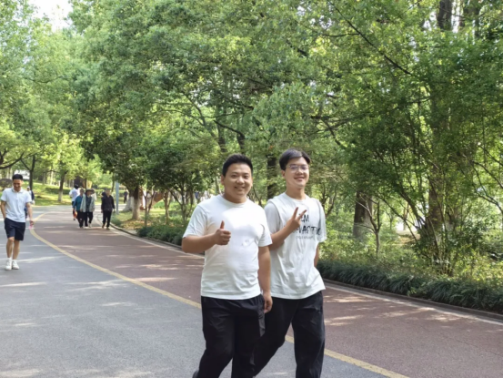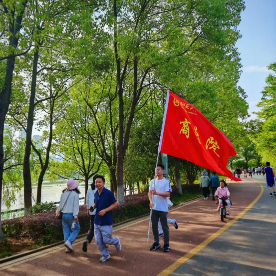 行进途中,大家相互鼓励、相互陪伴。不同学科、不同部门的教职工们借此机会交流互动,分享着教学中的点滴经验、生活里的趣事。