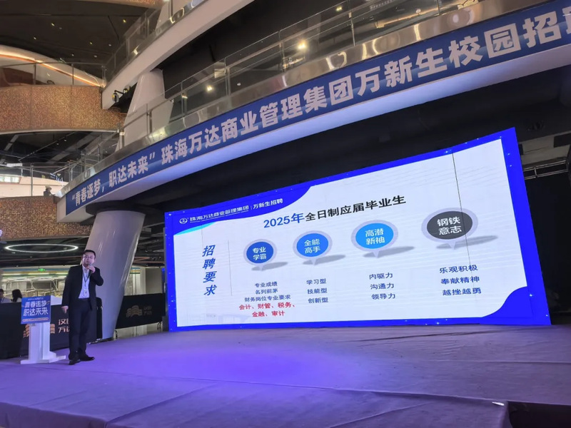 招聘会上,珠海万达商管集团财务副总李邦奎针对企业文化、招聘需求、薪酬福利、晋升路径等进行了详细的介绍。
