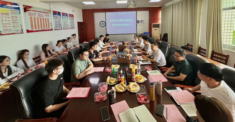 5月30日下午2:30,我院在北校区致远楼719会议室隆重举办2025届毕业生座谈会暨校友班级联络员聘任仪式。院党委书记刘汉成,副院长周业旺、马迎霜,党政办公室、学生事务办公室负责人,教研室主任,毕业年级辅导员和班主任代表与14名学生代表齐聚一堂,共敘师生情谊,共话未来发展。活动由院党委副书记李传坤主持。