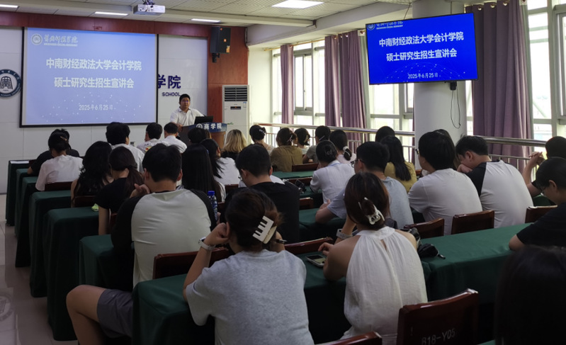 6月26日下午14:30,中南财经政法大学会计学院研究生导师吴卫华博士来我院开展2025年会计专硕招生宣讲。院党委副书记李传坤主持宣讲会,辅导员侯晓文、暑期留校备考的全体学生在致远楼704会议室参加会议。